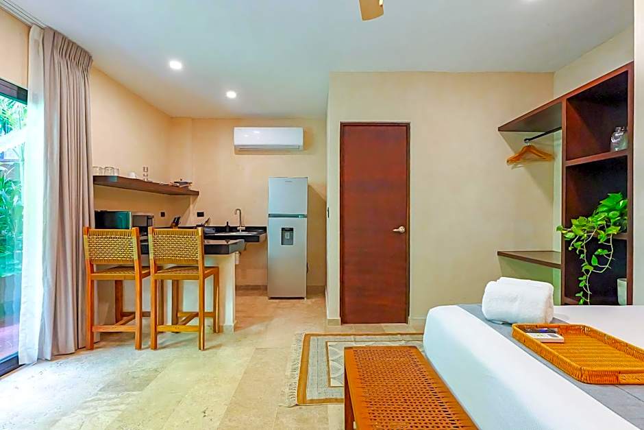 This suite offers a rooftop pool. Featuring a private entrance, this air-conditioned suite consists of a kitchen, 1 bedroom and 1 bathroom with a walk-in shower and a hairdryer. Meals can be prepared in the well-fitted kitchen, which comes with a stovetop, a refrigerator, kitchenware and a microwave. Boasting a balcony with garden views, this suite also provides soundproof walls and a flat-screen TV with streaming services. The unit offers 1 bed.